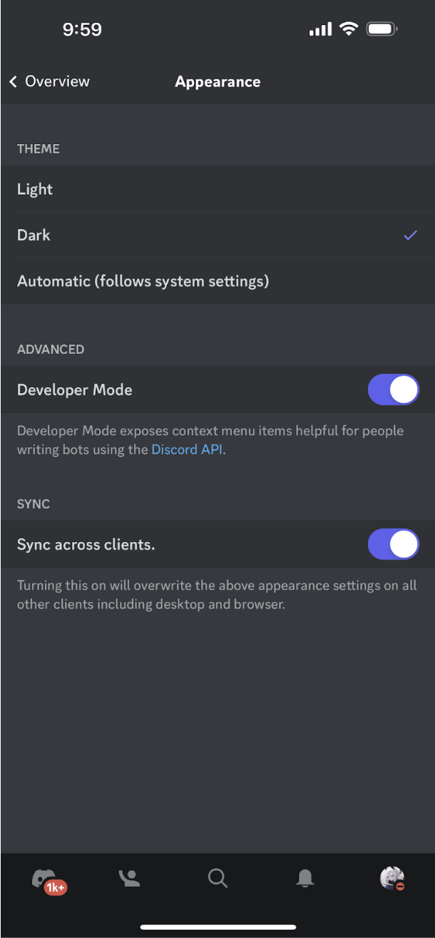 Enabling Developer Mode of Discord