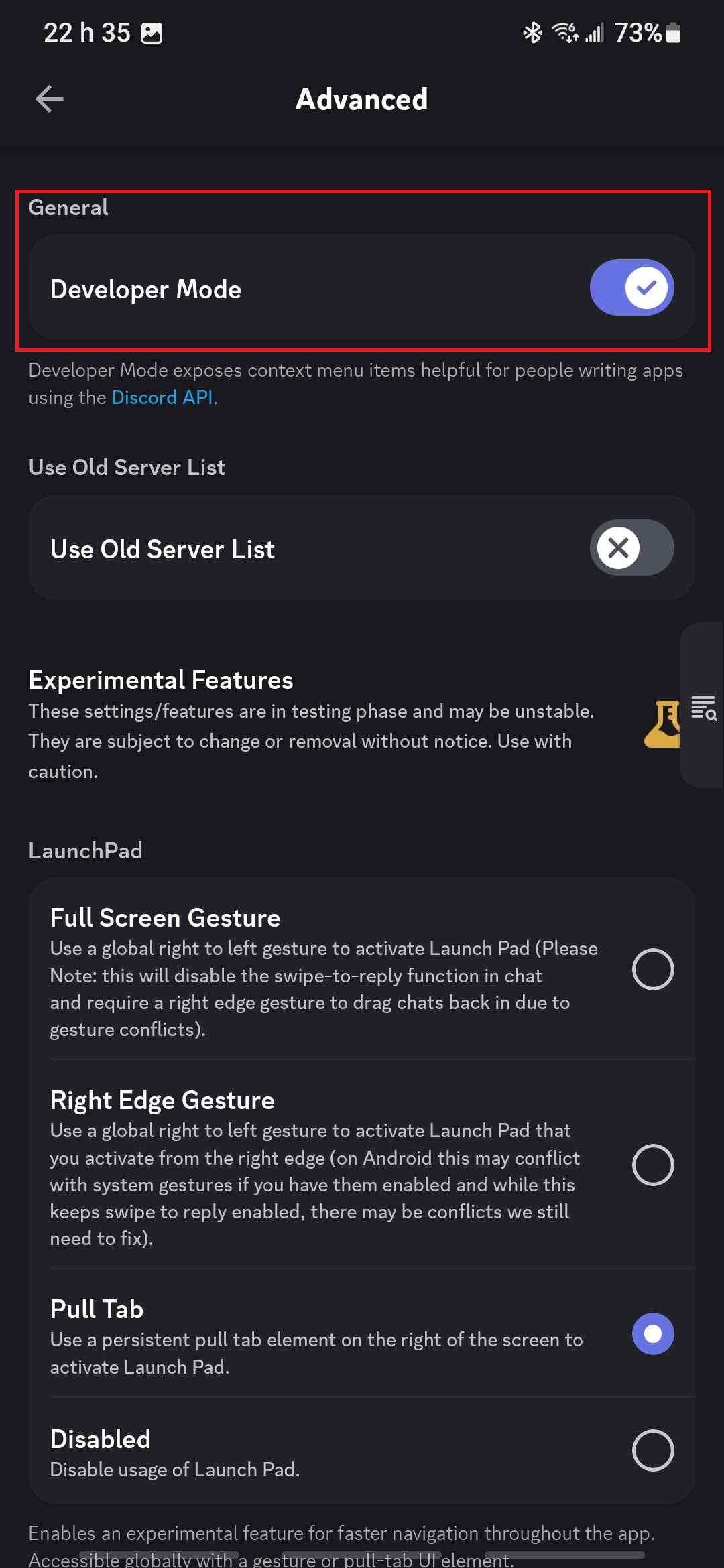 - Scroll down and toggle Developer Mode on.